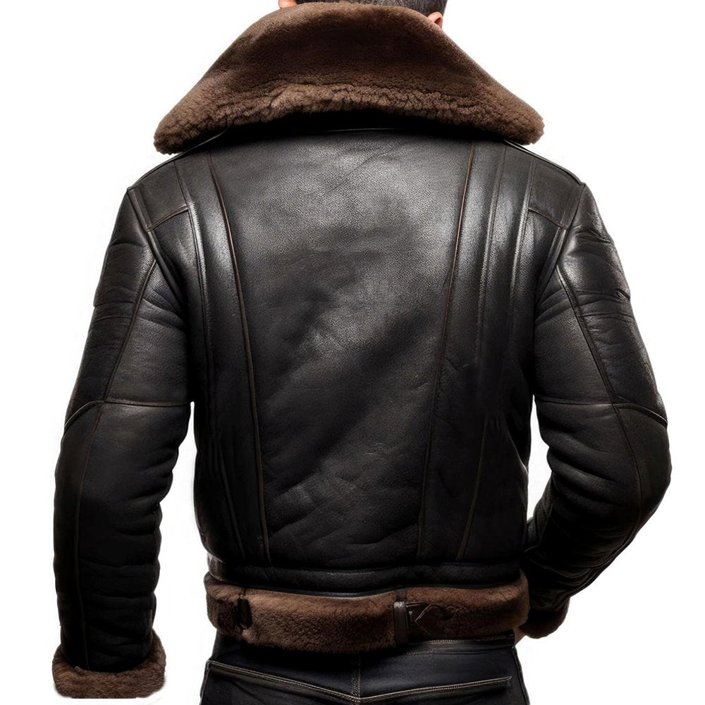 Men's Black Genuine Sheepskin Faux Shearling Fur Lined B3 Aviator Flight Pilot Winter Warm Thick Bomber Leather Jacket, you can feel the heights of the seasons while feeling comfort. This professionally made jacket is filled with warm brown faux shearling fur lining and great genuine sheepskin leather. It ensures comfort and style, giving the modern approach to the aviator silhouette with multiple zipped pockets for safekeeping of belongings as well as a heavy-duty YKK zipper closure. This jacket's dark brown patterns will give the sophistication and ensure it is such a great addition to a warm winter ensemble. The bomber black aviator jacket for men will ensure that you commute in style with the comfort you deserve-from the sky to the city streets.