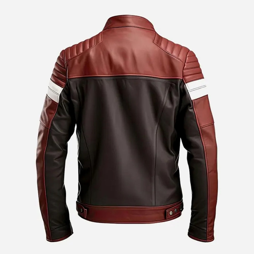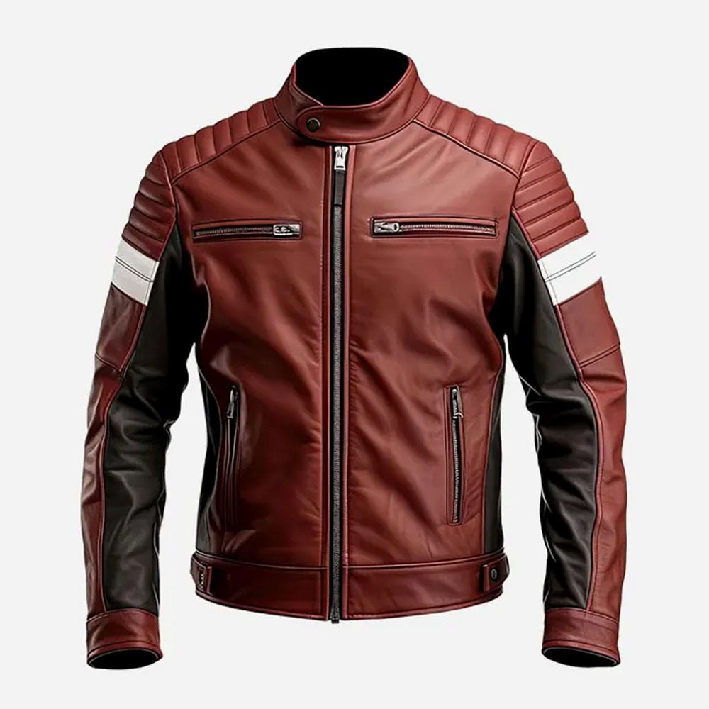 Maroon Cafe Racer Genuine Sheepskin Biker Leather Jacket for Men