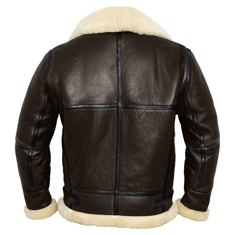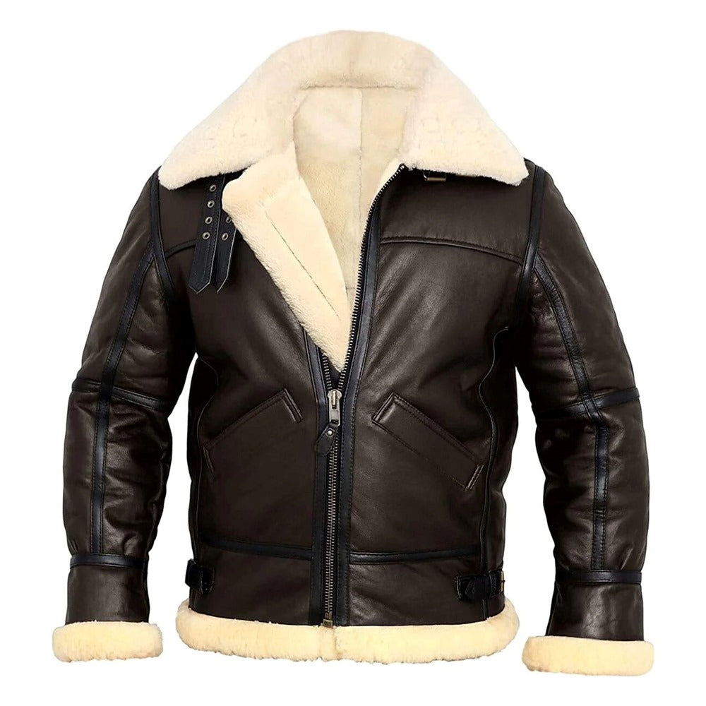 Men's Classic Brown Faux Fur Premium Sheepskin Thick Warm Leather Jacket